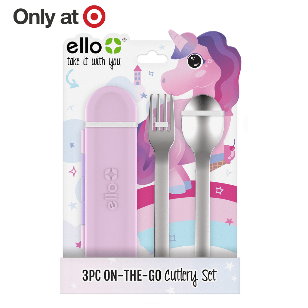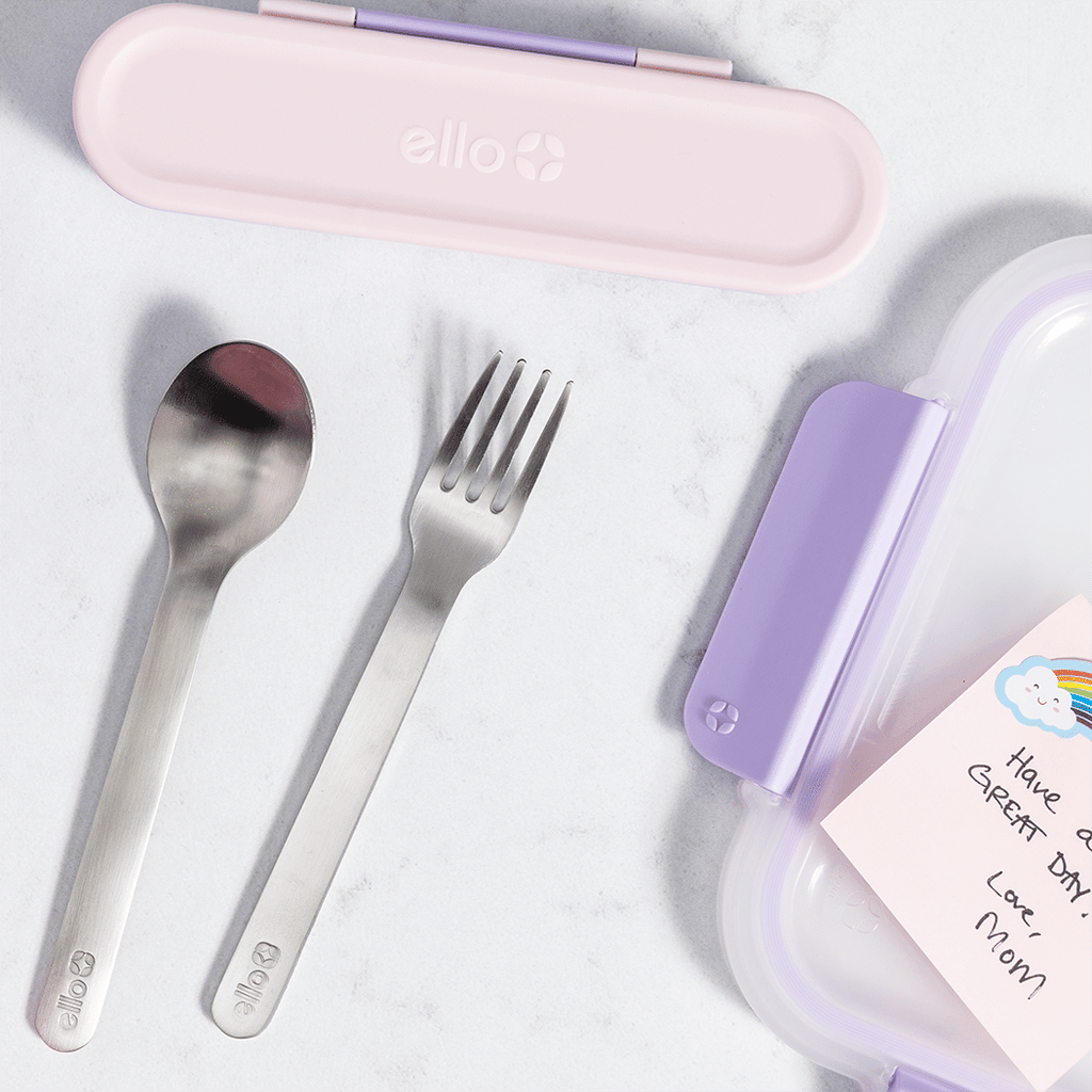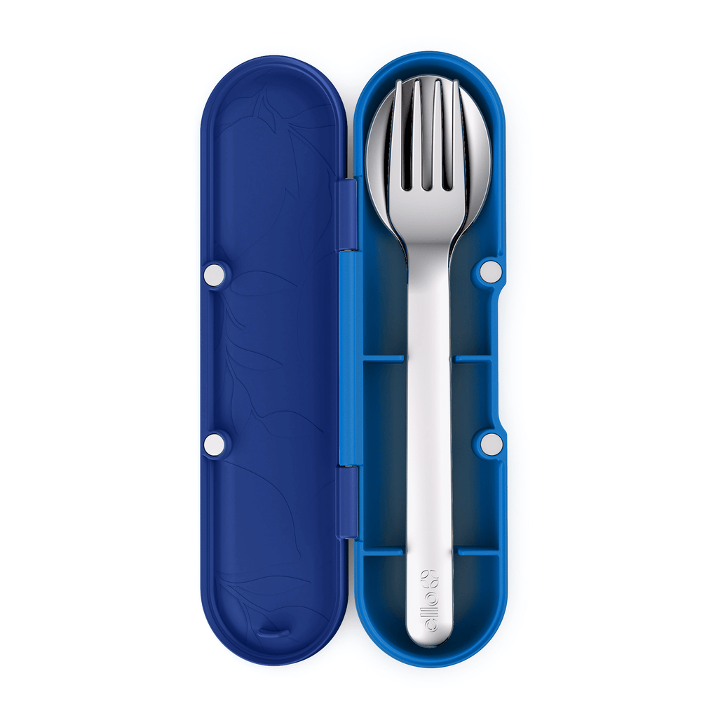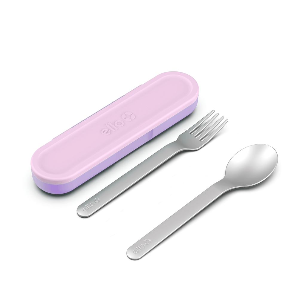 Reduce the use of plastic utensils! Perfect for packing kids' lunches, meals on the go, or picnics. The Ello Kids Cutlery Set provides your kids with a durable alternative for disposable cutlery and can easily be stored and transported in its plastic case. Pack these in your child's lunch for safe and clean eating at school or on the go. Once they're done, you can pop the cutlery and case in the dishwasher for easy cleaning. This travel set comes with a spoon, fork, and plastic case to hold flatware for transport.