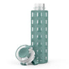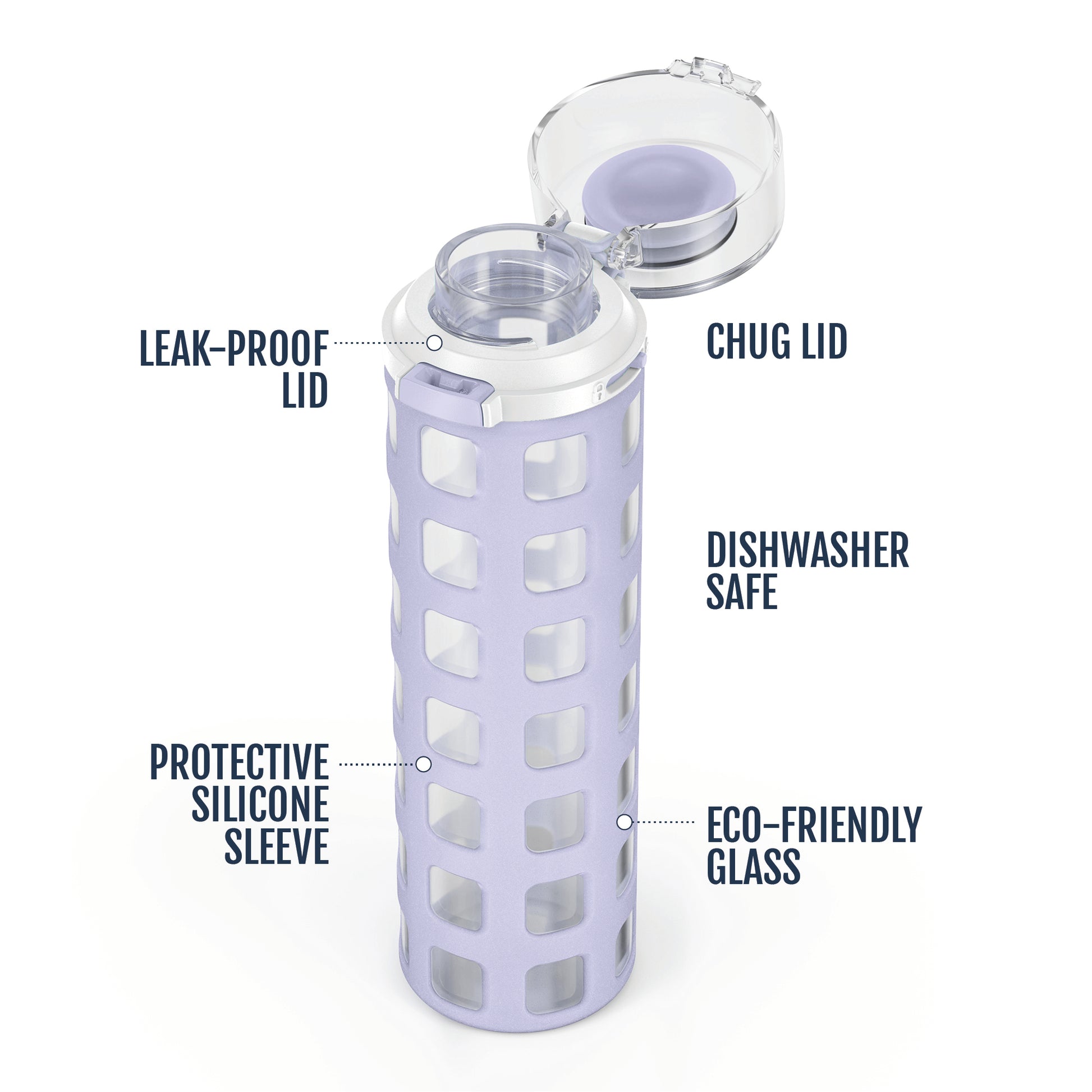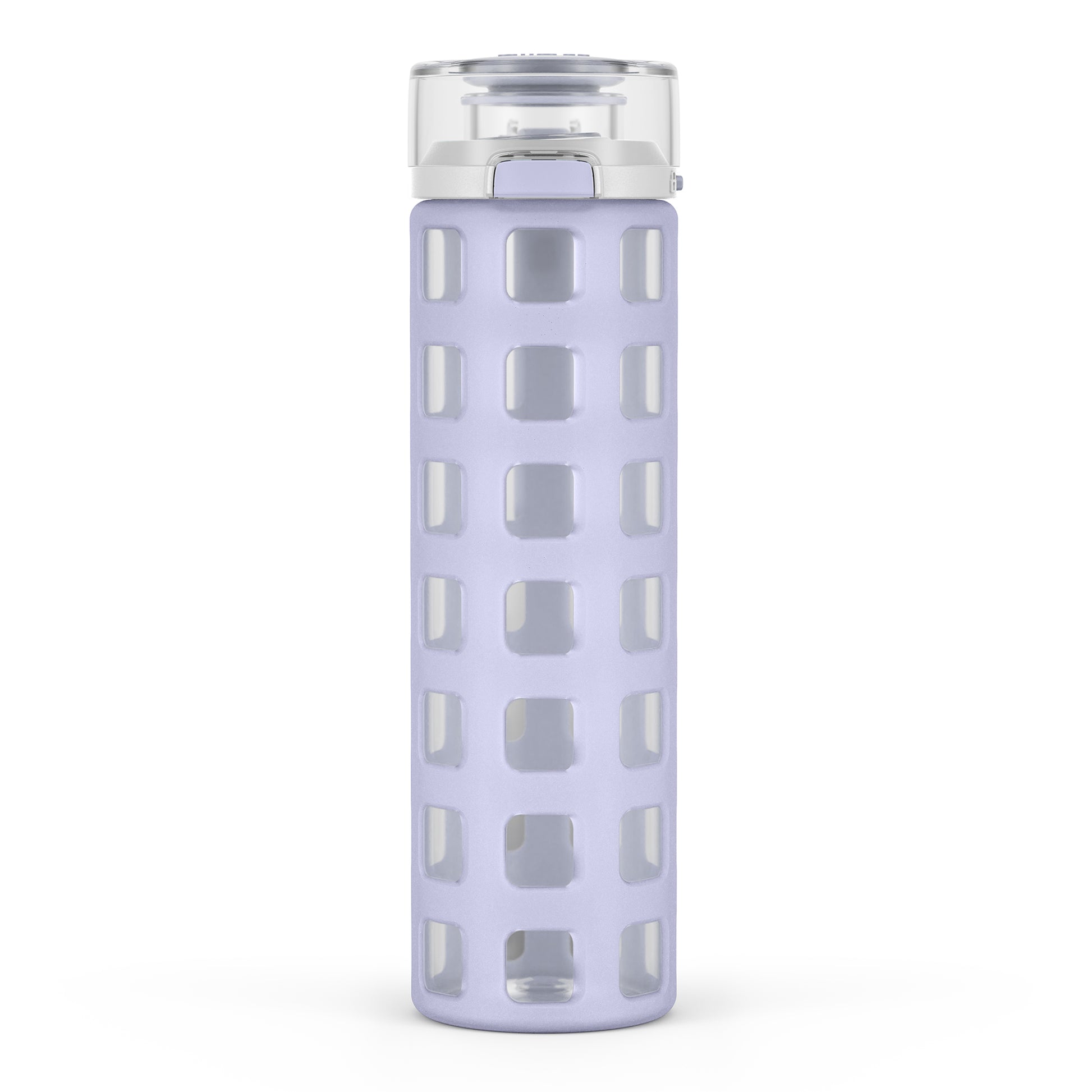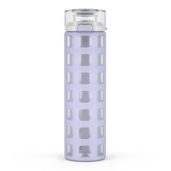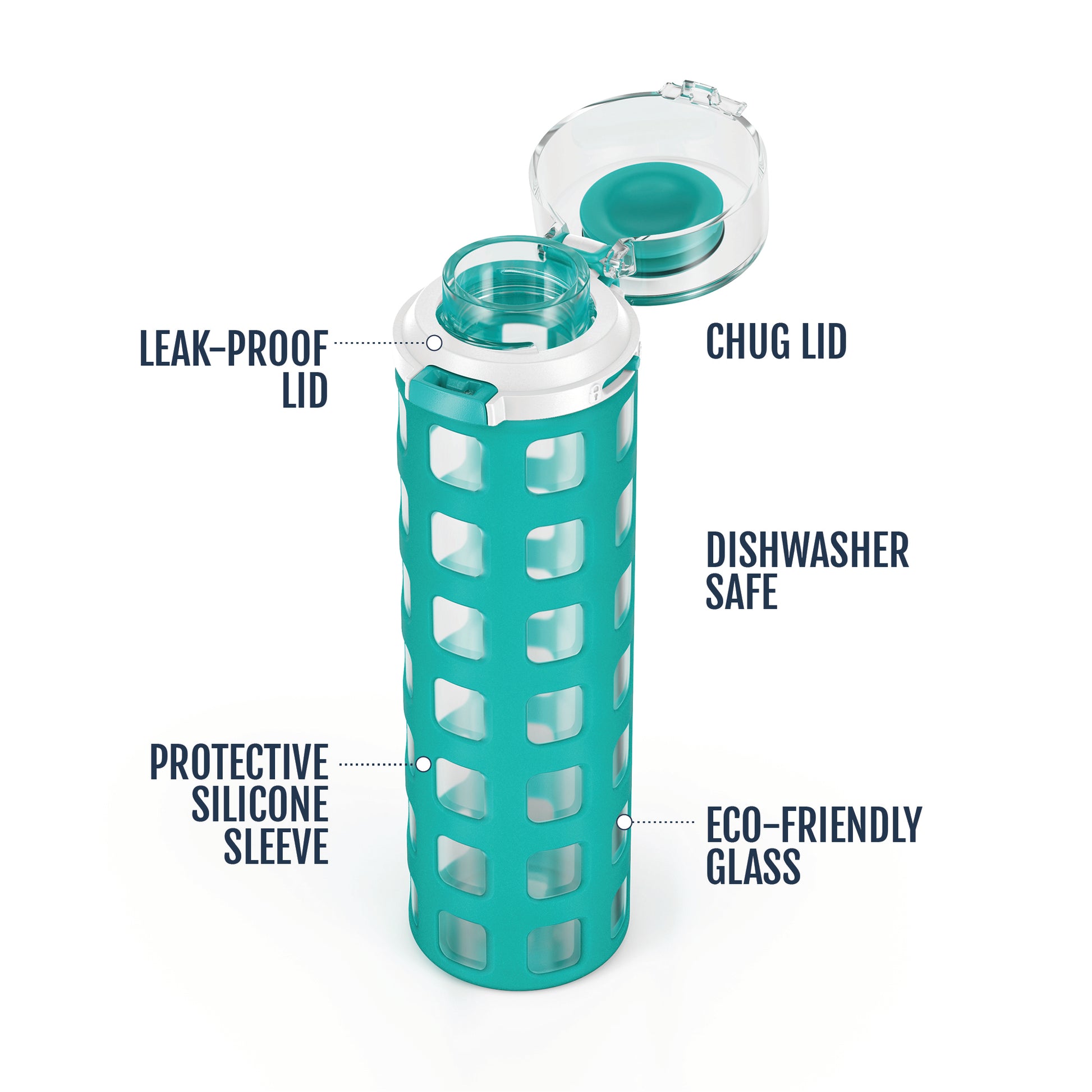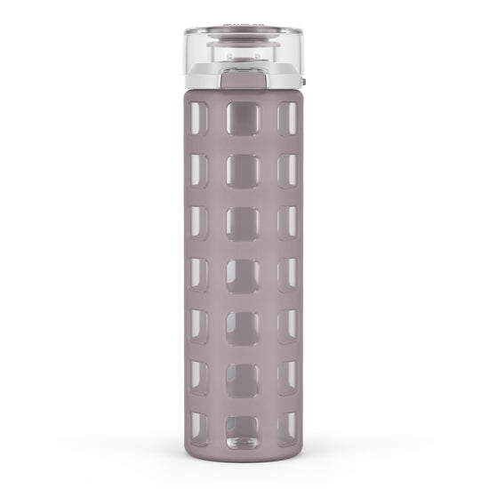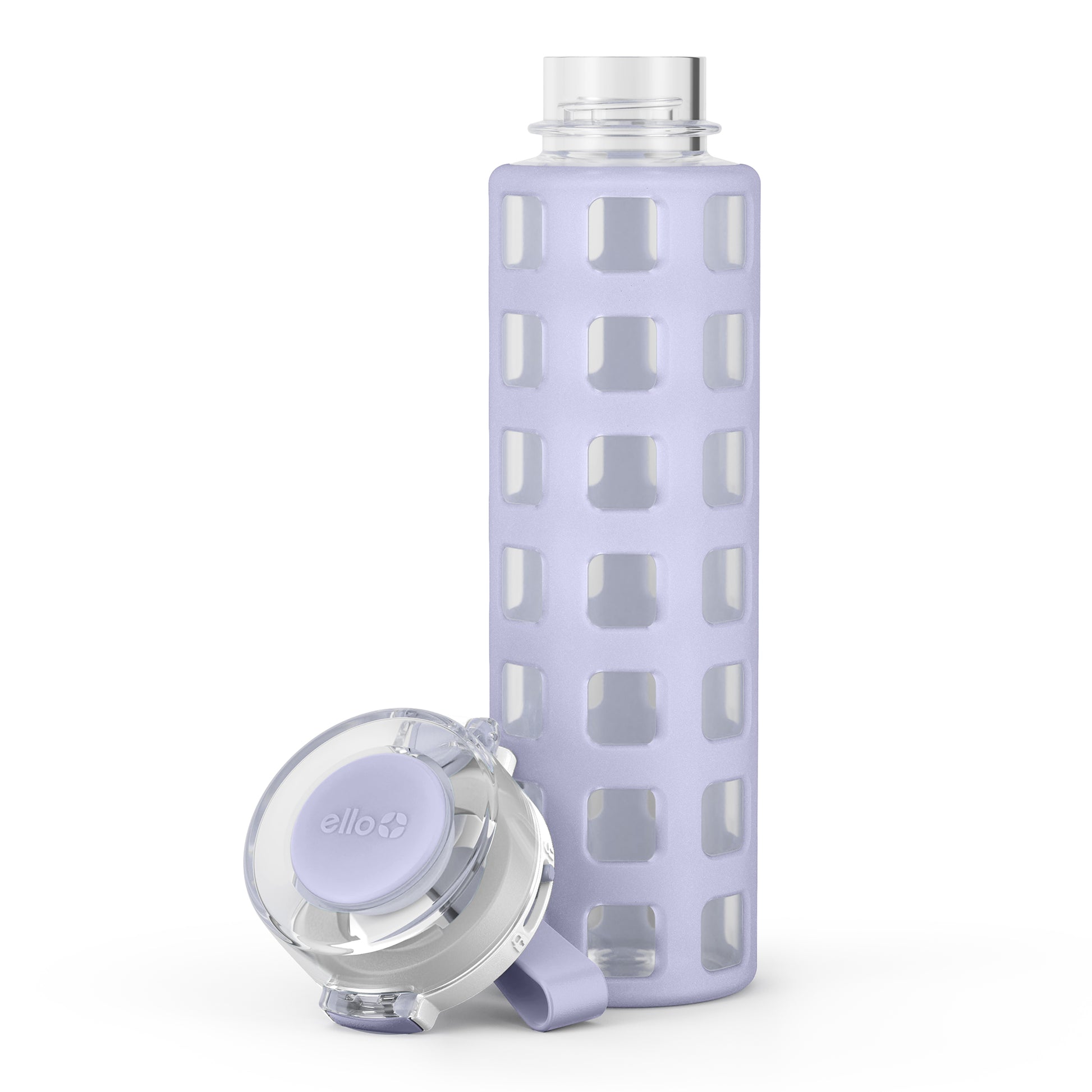 The Ello Syndicate Glass Water Bottle is made of clean-tasting glass that won't leach, stain or smell. Syndicate's one-touch flip lid makes it easy to pop and drink directly from glass, not plastic. FDA food-grade silicone sleeve protects the glass and provides a no-slip grip.