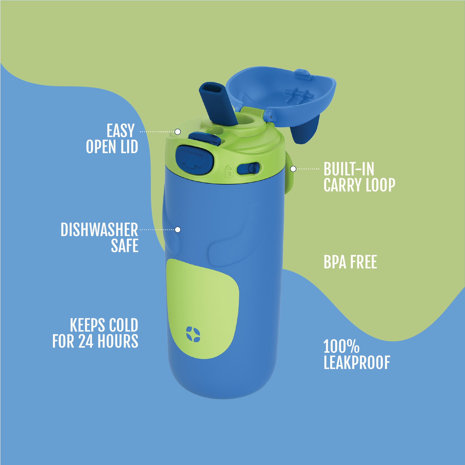 - A built-in carry loop makes it super easy to travel with and the bottle is cup holder friendly and perfect for school, sports, and recreation.