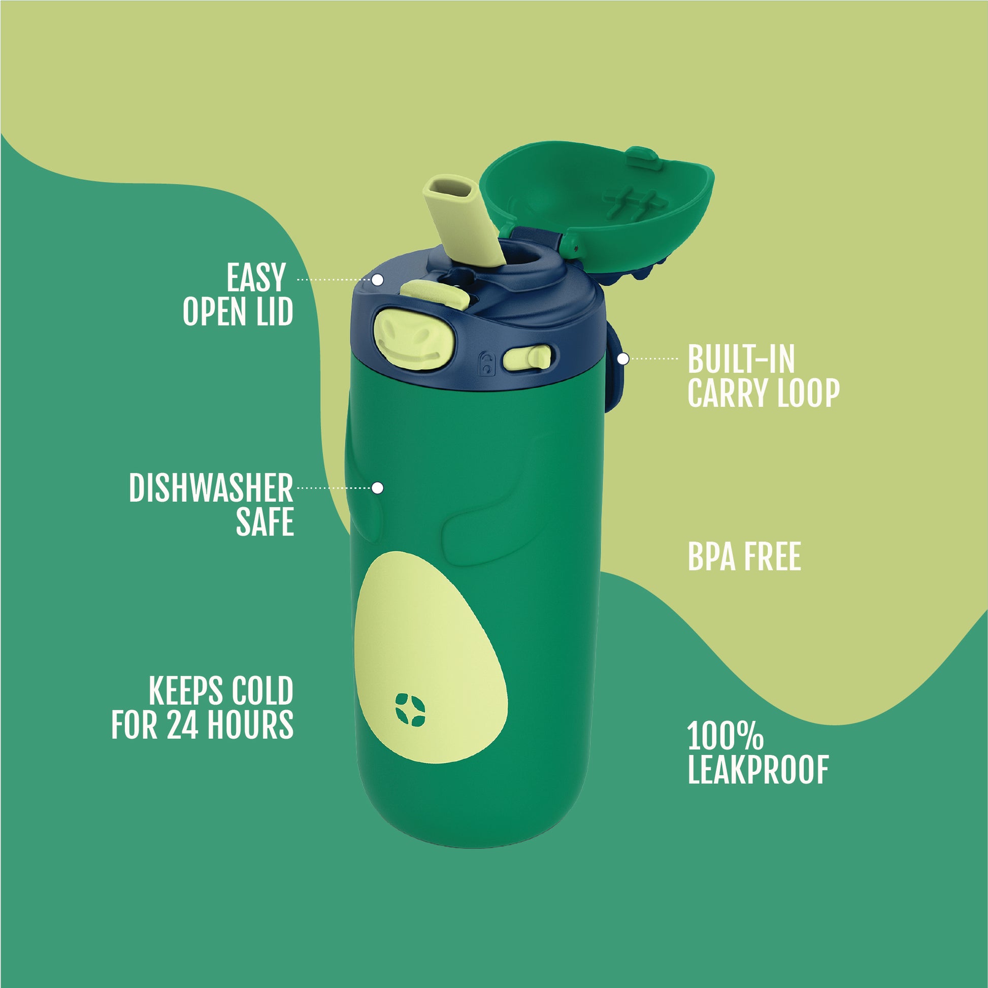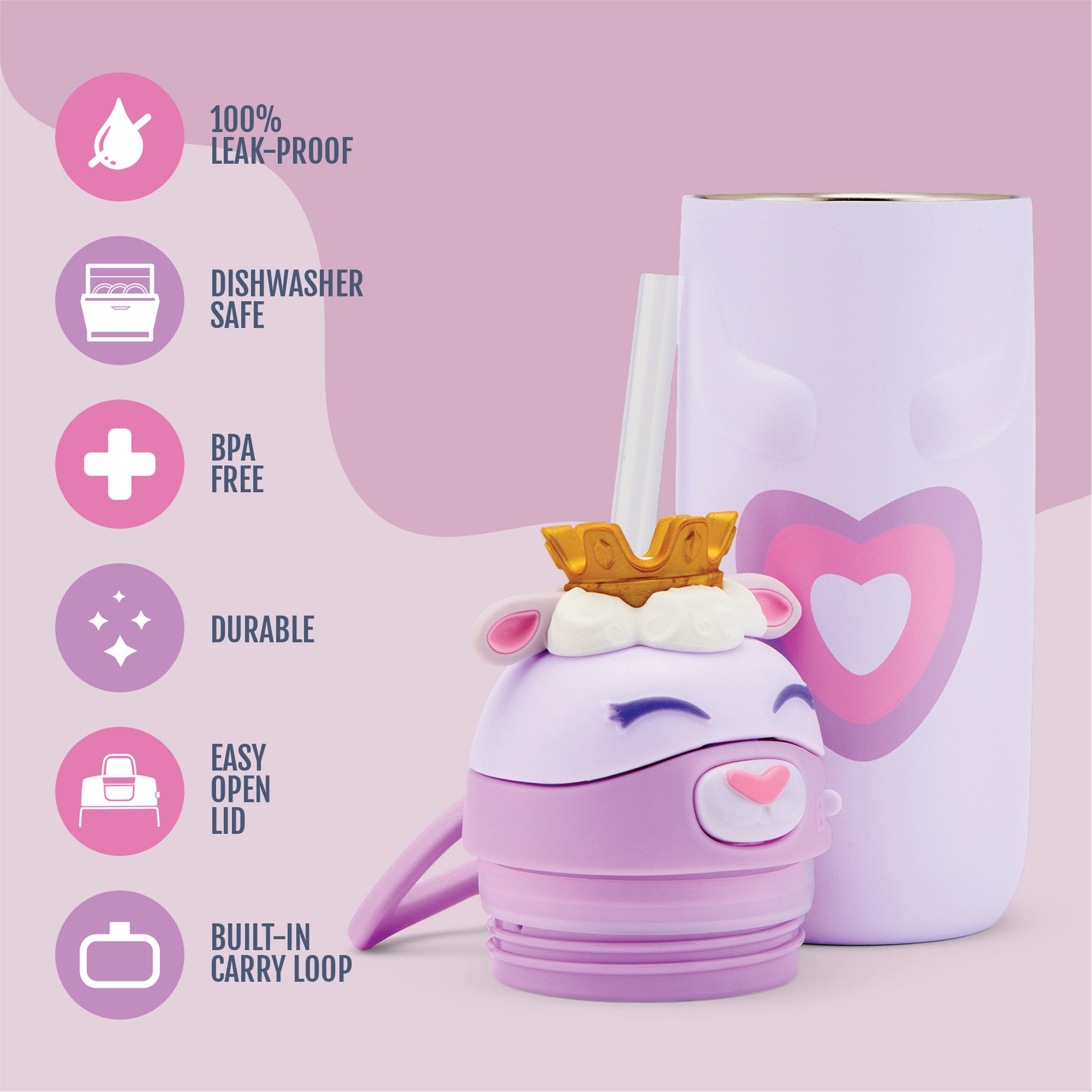 - Ellies feature a leak-proof locking lid design that conceals the straw when you're on the go but opens with a touch of a button for one-handed use.