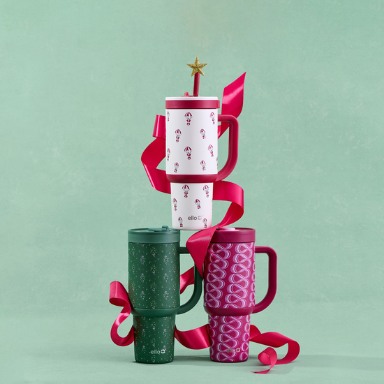 This drop features the Oasis 30oz Tumbler in three glossy and giftable colorways - Glistening Mistletoes, Peppermint Twist and Jingle Drop. Limited edition tumblers that bring holiday cheer to every sip.