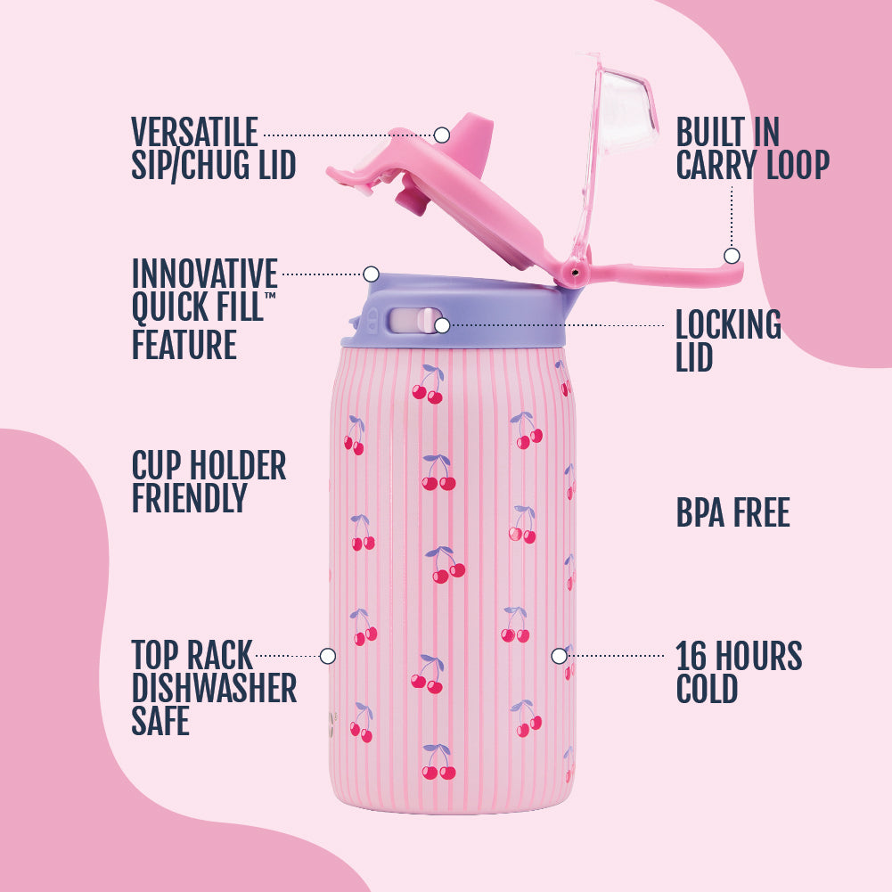 Meet the Pop & Fill 12oz Toddler Stainless Steel Water Bottle - built for busy little ones and even busier parents. Featuring our Quick Fill™ lid, it pops open wide for fast refills without unscrewing or twisting. Whether sipping from the soft spout or chugging from the wide opening, toddlers can hydrate their way. It keeps drinks cold for up to 16 hours and seals tight to help prevent spills. Designed to fit in stroller cup holders, it’s the perfect sidekick for playdates, errands, and everything in between.
