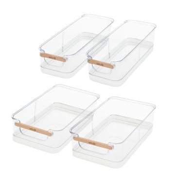 The Ello Fridge Bins streamlines the chaos of everyday fridge essentials. Whether you're storing yogurt, fruit, juice boxes, or cheese, everything is easy to see and grab—so nothing gets lost or forgotten. The crystal-clear body keeps contents visible at a glance, while natural wood handles make it easy to pull and restock.
